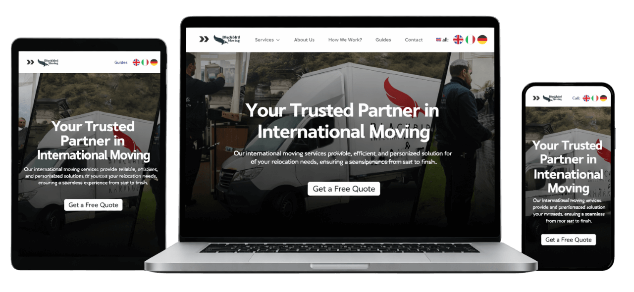 Blackbird Moving required ongoing website maintenance, SEO improvements, and multilingual support to strengthen their online visibility and attract region-specific relocation customers.