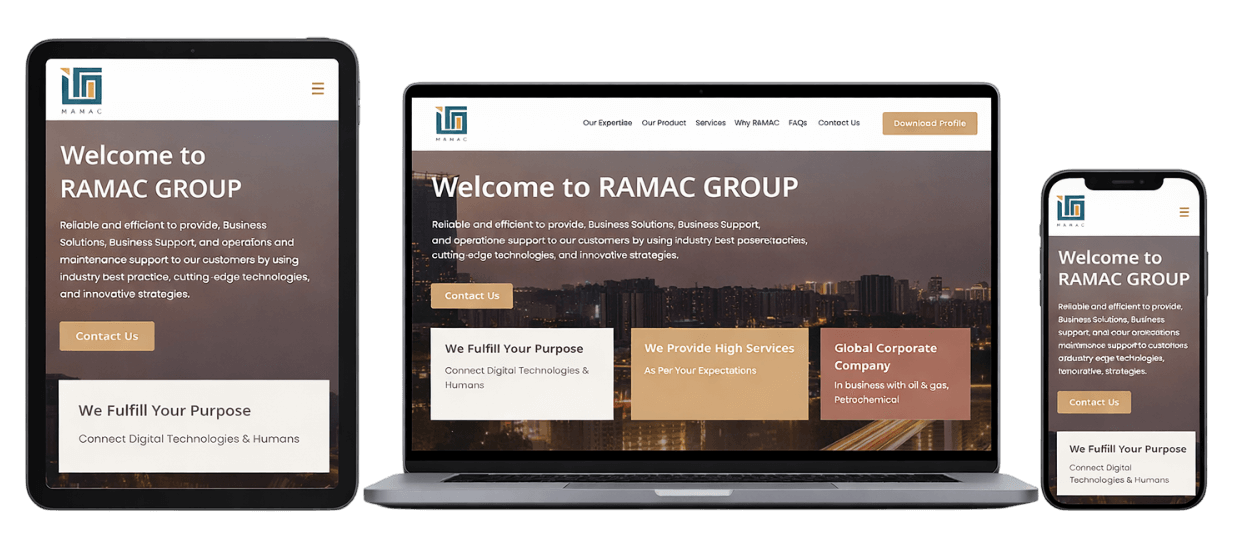 RAMAC sought a modern, streamlined online presence, migrating to a new server, implementing a full visual redesign with a single-page layout, and enhancing interactivity to reinforce brand messaging and engagement.